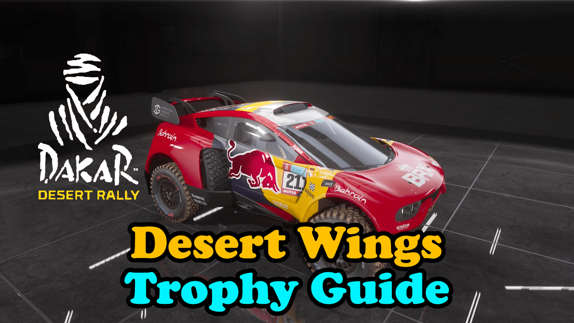 Here is the Dakar Desert Rally Desert Wings trophy guide where you need to get all vehicles sponsored by Red Bull. In total, there are 23 vehicles sponsored by Red bull which will cost you a total of 36,559 Dakar Points which you earn for completing / winning races and come at a heavy cost for the most part so the better you race, the less money you will have to spend on repairs leaving you more money for purchasing new vehicles.